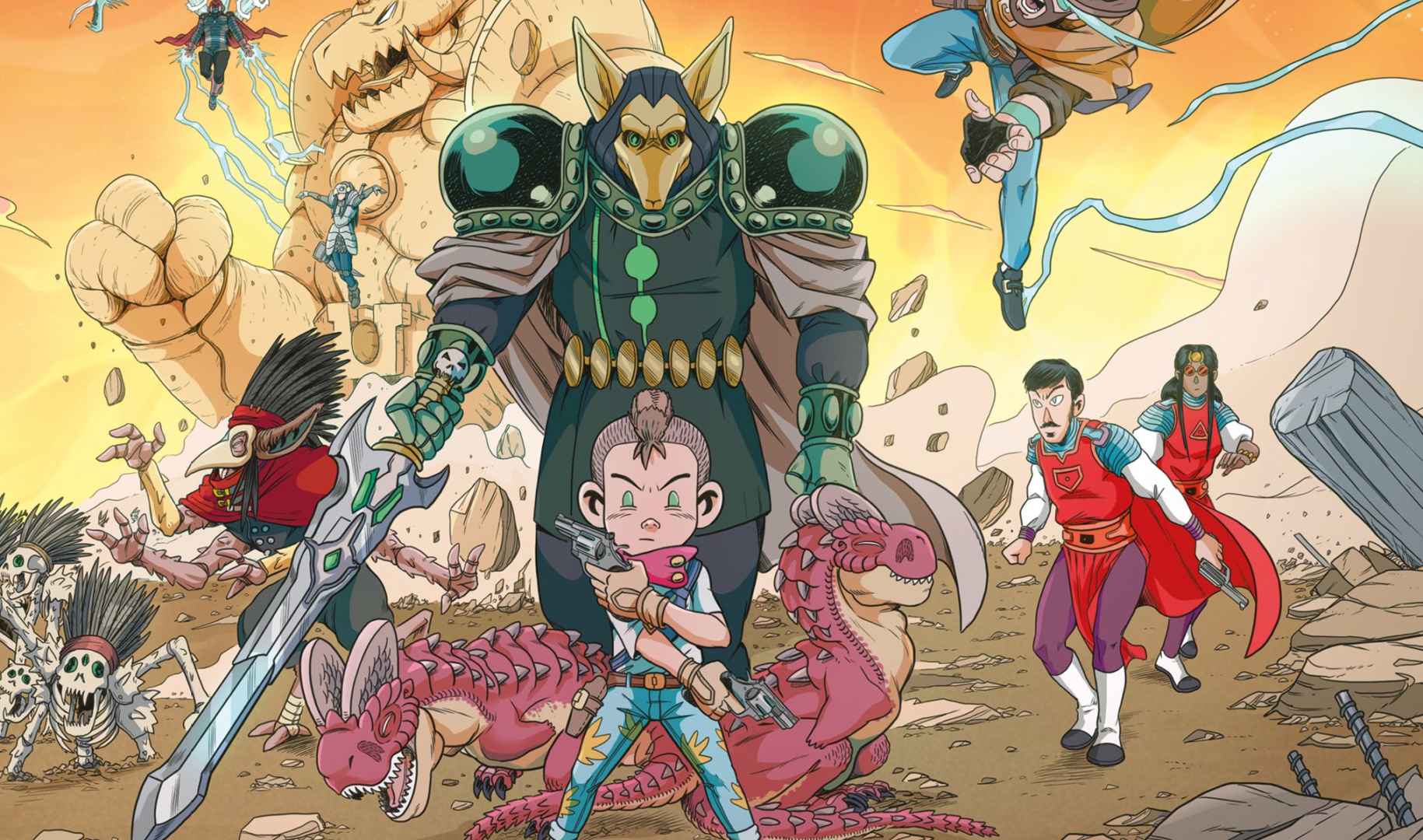 I tre fratelli-banditi Doolin sono i cow-boy protagonisti di questo mondo arido e infestato dai dinosauri (fauna autoctona del pianeta) che gli impavidi possono cavalcare. Come se non bastasse l’epico connubio tra dinosauri e fuorilegge del western, Capitan Artiglio unisce al wordbuilding di Kids with Guns: sciamani alieni autoctoni, ovvero i pipistrelliformi Xiantu (di derivazione mesoamericana), anarchici teppisti di strada ispirati alle rock bands, cavalieri feudali, zombie con l’estetica di Mad Max, robocoops nettuniani, divinità terresti appartenenti agli antichi culti politeisti, cacciatori di taglie futuristici e centinaia di citazioni a diversi manga e/o prodotti mainstream, uno su tutti Dragonball. Tutto questo senza spiegare un perché, il risultato è un’ambientazione incoerente, cacofonica e dissonante che bombarda il lettore di pseudo-info dump (ovvero informazioni non utili). Anche se tutto rimane pittoresco e divertente.