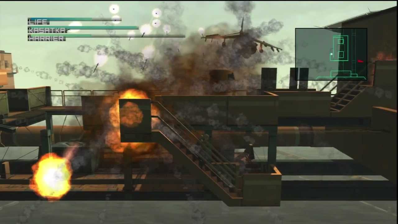 Appartenente alla categoria “uomo vs. macchina”, lo scontro con l’Harrier (primo esempio di caccia a decollo verticale) in Metal Gear Solid 2: Sons of Liberty. Non il più impari, non il più spettacolare, eppure è capace di trasmettere qualcosa. Perché? Innanzitutto la zona di scontro è molto limitata: una passerella a due piani a congiunzione dei container della Big Shell. Tutto intorno, cielo e mare. I container sono momentaneamente inaccessibili, quindi non c’è via di fuga. Durante lo scontro la passerella viene progressivamente distrutta e incendiata dai colpi dell’aereo, concedendo sempre meno punti di riparo. L’unica arma con cui fronteggiare l’Harrier è il canonico Stinger, che di per sé non ci fa schifo, anzi, ma che richiede un certo tempo per essere usato a dovere (perché i missili a ricerca vadano a bersaglio, dobbiamo tenere l’obiettivo nell’inquadratura del mirino), tempo nel quale la nostra esposizione ai colpi nemici è massima. L’Harrier colpisce da ogni lato e dall’alto, a volte stando fermo, a volte di passaggio. Solid Snake (sotto lo pseudonimo di “Iroquois Pliskin“) ci dà una mano, dal suo elicottero, insieme a Otacon, ma niente di trascendentale. Lo scontro si piazza inoltre in un momento importante, sebbene ancora all’inizio, della trama. Il giovane Raiden, poco dopo aver ribadito quanto poco sappia di ciò che sta realmente accadendo, incontra prima Solid e poi Solidus Snake, che co-piloterà l’aereo con Vamp. Le cose lasciate in sospeso sono molte e, come da manuale di narrativa, la tensione dello scontro ne viene proporzionalmente accentuata. Solidus ci parla con voce metallica (prima che Bane diventasse una star di Hollywood), ci sfida e ci insulta fino all’urlo finale, ultimo tocco di classe.