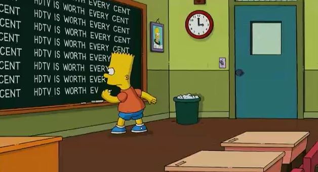 Altra gag storica dei Simpson, la prima in alta definizione e in 16:9. L’HDTV vale ogni centesimo, d’altronde, e in effetti non potremmo essere più d’accordo.