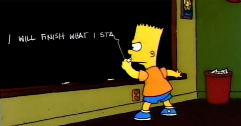 Questa è semplicemente geniale. Bart promette di finire ciò che ha iniziato, e lascia a metà il compito. Ironico no? Il bello è che capita spesso anche a noi. Come quella volta in cui