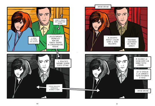 Dopo aver descritto la rischiosa operazione narrativa, a nostro parere scommessa ampiamente vinta, passiamo al lato grafico del volume, che a questo punto potreste aspettarvi giocare sul sicuro. E invece no: visivamente e fisicamente, Baronciani adopera una serie di soluzioni tanto semplici quanto (purtroppo) non comuni, che danzano sull’essenza del medium libro/fumetto e, a livello ancora più istintuale, ne accentuano l’interattività, senza chiedervi il permesso vi intrappolano sempre di più tra i ricordi e le speranze dei personaggi in scena. Cose tanto semplici da potersi descrivere meglio con la parola “idee” o “giochi”, che con “sperimentazioni” (termine che, infatti, Alessandro non vede di buon occhio, almeno nella sua accezione più elitaria).