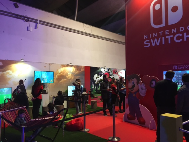 La prima parte della fiera che saltava all’occhio erano i vari stand dedicati ai giochi, dove abbiamo trovato un gran numero di postazioni per provare diversi titoli già usciti e in anteprima. Tra quelli incontrati, sicuramente lo stand Nintendo è riuscito a spiccare: vuoi per l’uscita di Nintendo Switch, vuoi per una cura nei dettagli e nell’estetica superiori rispetto agli altri partecipanti. La divisione italiana della casa di Kyoto ha sicuramente allestito uno spazio ben caratterizzato, allietando i visitatori con vari giochi a disposizione: 1-2-Switch, The Legend of Zelda: Breath of the Wild e, in anteprima, titoli come Mario Kart 8 Deluxe, Splatoon 2 e Arms, mostrando tanto a noi quanto ai visitatori le indubbie potenzialità della nuova console.