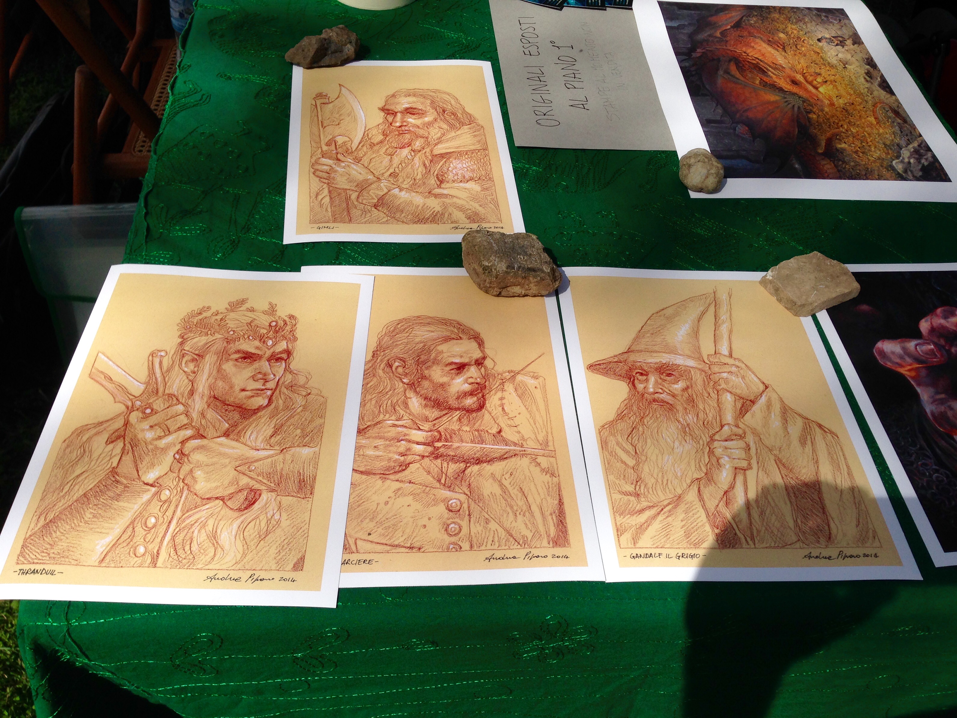 Per fortuna la parte espositiva non ha lasciato a desiderare, anzi. Assolutamente pregevoli le tavole del maestro Piero Crida, (illustratore storico dell’edizione italiana del Signore degli Anelli edita da Rusconi), riunite tutti insieme in una suggestiva mostra comprendenti le opere utilizzate dalla casa editrice per le copertine ufficiali più altre inedite. Inestimabile la presenza di alcuni libri e della corrispondenza personale appartenuti allo stesso professor Tolkien e ai suoi figli.