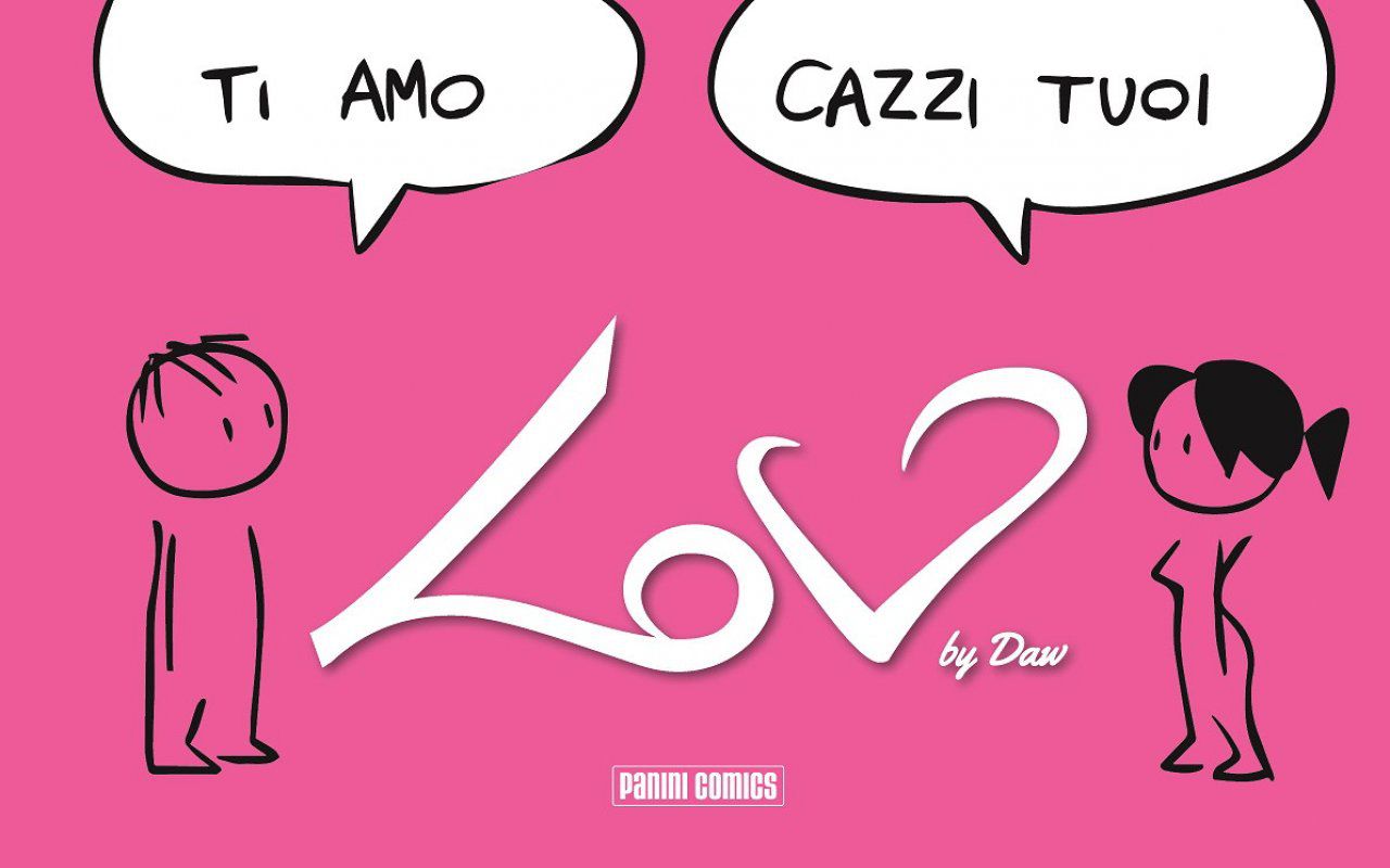 Ah, l’amore. L’amore cantato dai poeti, dai più grandi scrittori, declinato in mille modi da registi, pittori, musicisti e persino youtubers. L’amore è una cosa semplice, ci dice il cantante numero 26 nella tavola periodica degli elementi, semplice come i tratti di pennarello delle vignette che compongono Lov del bergamasco Daw, la mente che ha partorito il Misterioso Papero del Giappone, Troppolino e Sorsetto. Panini Comics fa un regalo di San Valentino a tutti gli innamorati, soprattutto quelli non ricambiati, pubblicando la prima raccolta cartacea delle strisce di non amore che girano sul web – copiate, customizzate, plagiate e omaggiate – dal 2005.