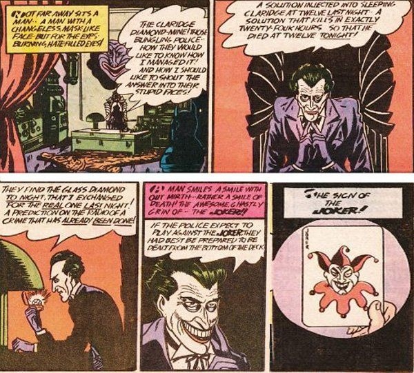 Quando il Joker compare sul primo numero della testata dedicata a Batman lo stesso Bob Kane, creatore del personaggio, non era consapevole di aver scoperchiato il vaso di Pandora, tanto che si pensava di fare del Giullare del Genocidio un nemico usa e getta, uccidendolo alla fine della prima avventura. E, forse anche per questo, quel Joker appariva del tutto pazzo, cartoonesco nel suo modo di affrontare la vita da criminale.