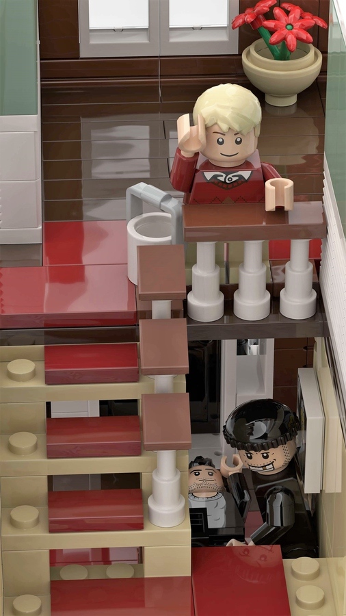 Indimenticabili i siparietti con i due ladri, Harry e Marv (che tra l’altro sono due delle tre minifigure presenti nel lotto. La terza è ovviamente Kevin) ad esempio, e tante delle trappole di Kevin sono state riprodotte all’interno della casa.