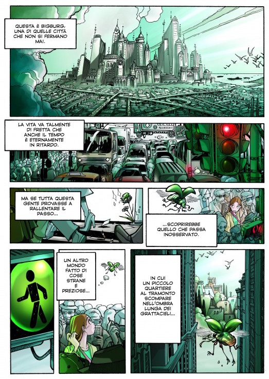Monster Allergy inizia così: “Questa è Bigburg, una di quelle città che non si fermano mai. La vita va talmente di fretta che anche il tempo è eternamente in ritardo. Ma se tutta questa gente provasse a rallentare il passo… Scoprirebbe quello che passa inosservato. Un altro mondo fatto di cose strane e preziose…”. Così parte una delle serie a fumetti più importanti degli ultimi decenni, che non potete non conoscere. Così, attraverso queste didascalie (magistralmente scritte da Francesco Artibani), si entra piano piano nel mondo di Bigburg. Così la sensazione che le cose siano molto più di quello che appaiono, che qualcosa si nasconda nell’ombra, comincia a farsi largo nei nostri cervelli. I disegni di Alessandro Barbucci completano il quadro mostrandoci prima l’intera metropoli dall’alto sfruttando una grande vignetta. Dopo, ci guidano per le strade seguendo le tribolazioni di un insetto mentre le inquadrature si restringono, quasi all’improvviso. Stiamo facendo il nostro ingresso in un altro mondo, adesso è evidente. Stiamo lasciando il nostro grigio mondo per sprofondare dentro quello di Monster Allergy.