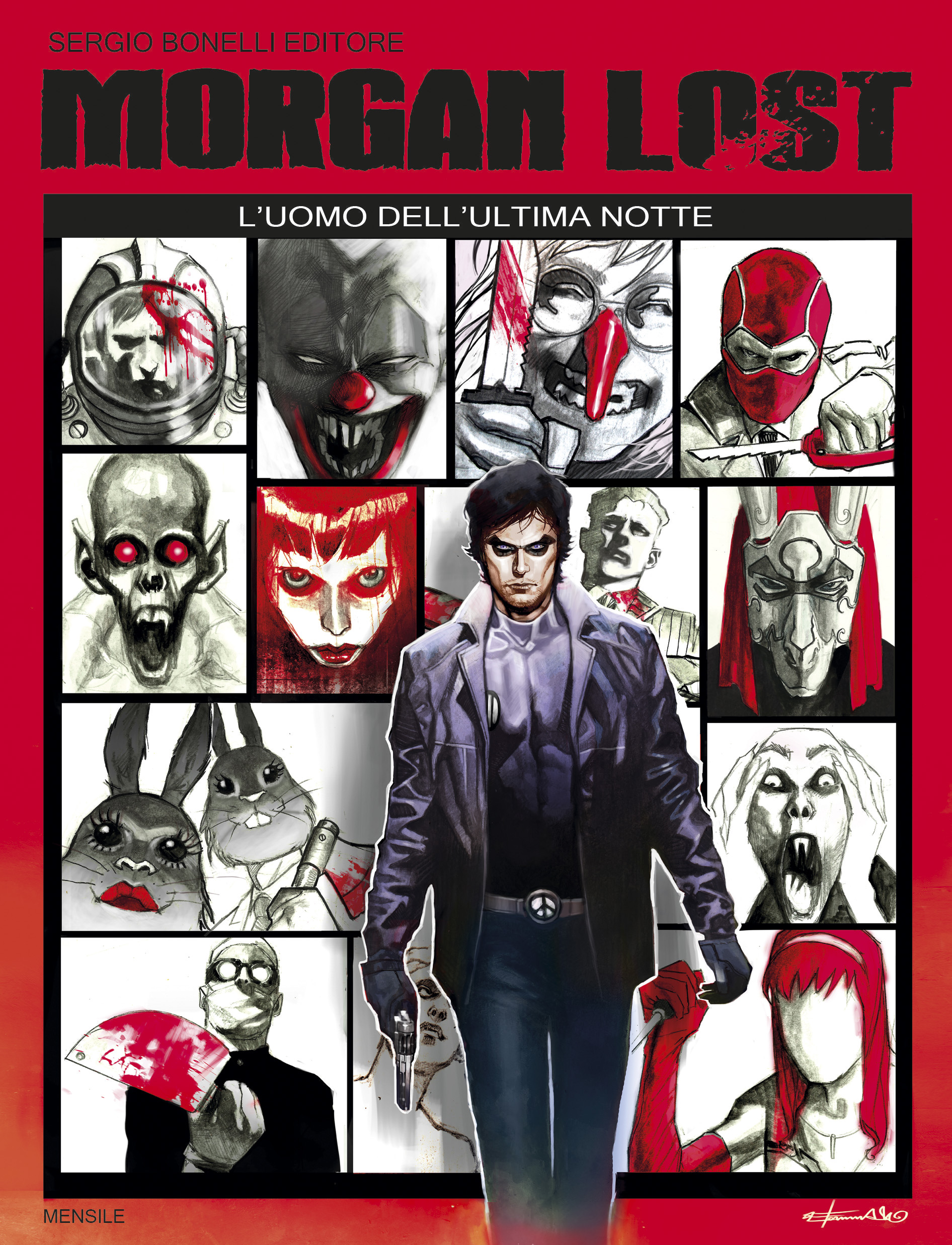 Cos’è Morgan Lost? La nuova serie action-thriller edita da Sergio Bonelli Editore. Ah, e quante puntate avrà? Niente puntate, niente stagioni. Morgan Lost è pensata per essere mensile e restare nelle edicole “finché dura”. Sky is the limit. Chi è Morgan Lost? Un cacciatore professionista, come tanti altri, di serial killer, in un mondo ucronico dove la Seconda Guerra Mondiale non è mai scoppiata, la burocrazia è al comando della civiltà e lo show business glorifica l’arte dell’omicidio. Interessante! E non è finita qui… Morgan Lost non è in bianco e nero, bensì in bianco, rosso e nero. A questo punto Morgan Lost dovrebbe, ragionevolmente, aver catturato la vostra attenzione. Se non altro perché, pensandoci bene, qualcosa non quadra. Da una parte la tricromia, l’eroe tormentato dalle origini oscure (lo psicanalizzeremo più tardi, non preoccupatevi), sintomi dell’aria di rinnovamento che circola in Bonelli ormai già da un po’. Dall’altra però la disposizione delle vignette non rompe mai la gabbia Bonelli (come invece succede spesso in Orfani e Lukas), il fatto che Morgan Lost continuerà a tempo indeterminato, persino alcune caratteristiche del protagonista hanno il distinto sapore della classica serie a fumetti italiana.