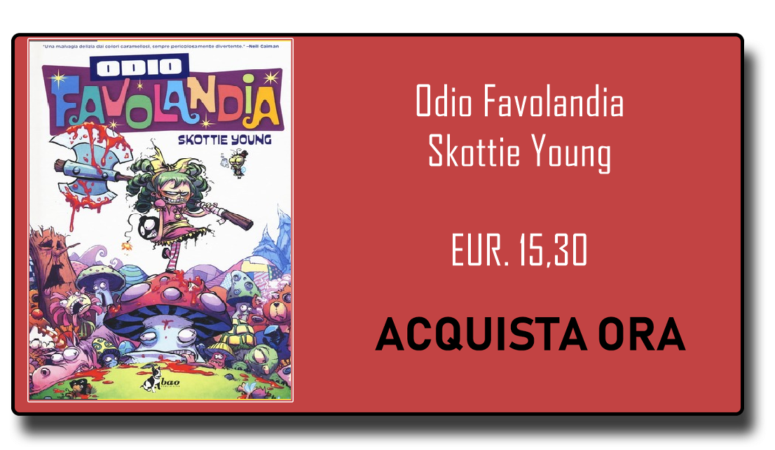 Leggere Odio Favolandia è questo: un’esperienza unica nel suo genere, in grado di coinvolgere il lettore con una serie di battute in crescendo, capace di mantenersi fresca e originale nel corso della sua intera stesura. Per un lettore appassionato di fantasy, ma anche per chiunque abbia una passione per il genere splatter, l’opera di Skottie Young è un must have.