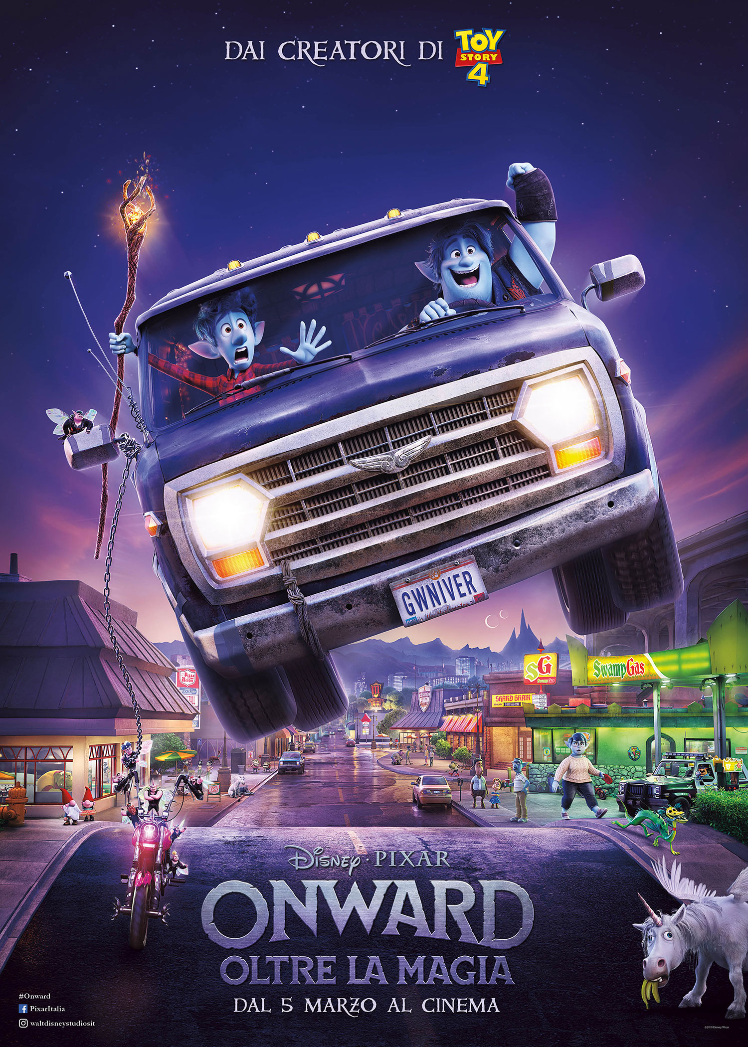 Diretto da Dan Scanlon e prodotto da Kori Rae, che hanno già firmato l’acclamato Monsters University del 2013, Onward – Oltre la Magia è ambientato in un immaginario mondo fantastico e racconta la storia di due fratelli elfi adolescenti, Ian e Barley, che si imbarcano in una straordinaria avventura per scoprire se nel mondo esista ancora un po’ magia.