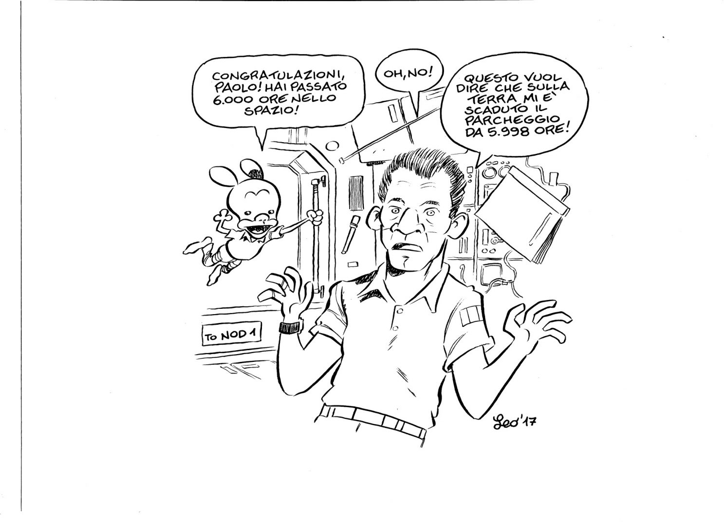 Ovviamente, c’è chi ha pensato di festeggiare questo record in maniera speciale: il noto fumettista Leo Ortolani ha infatti dedicato a Nespoli una divertente vignetta di Rat-Man, il topo-supereroe protagonista di “C’è Spazio per Tutti”, il primo albo a fumetti ad aver volato in orbita. Nella vignetta, Rat-Man si congratula il record, ma Nespoli sembra più preoccupato che, dopo tanta assenza dalla terra, il tagliando del parcheggio della sua auto sia ormai scaduto. L’albo “C’è Spazio per Tutti” è edito da Panini Comics in collaborazione con l’ASI ed il supporto dell’ESA. Sarà presentato ufficialmente sabato 4 novembre prossimo in occasione della nuova edizione di Lucca Comics & Games.