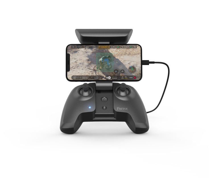 Anche il telecomando Parrot Skycontroller 3 è pieghevole e pronto in un secondo e si connette automaticamente ad ANAFI.