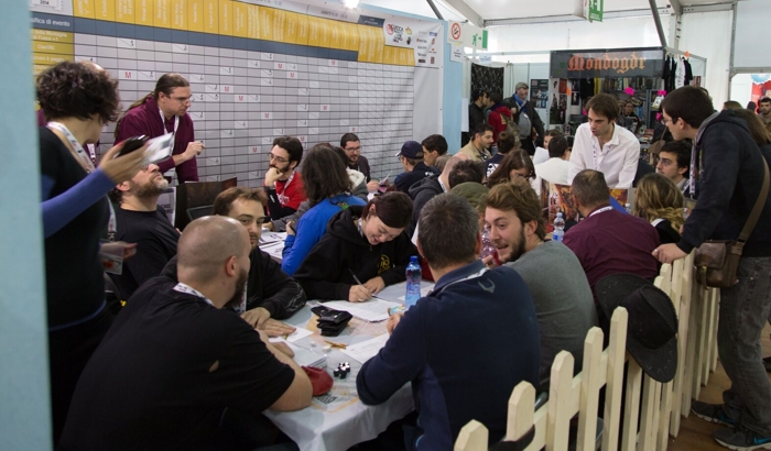 Se l’idea di partecipare vi solletica, allora dovete mettere in piedi subito una squadra, darle un nome e un vessillo e inventarvi una biografia. E questo è solo l’inizio. Per sedervi a uno di quei tavolini avrete bisogno di creare di vostro pugno una storia ambientata nel vostro mondo preferito con il set di regole che più vi aggrada. E che sia una storia avvincente e profonda, perché non sarete voi a giocarla ma gli altri contendenti. Sì, avete capito bene, la vostra avventura sarà spacciata alle altre squadre e quindi impegnatevi per non fare brutta figura. D’altronde voi giocherete con le storie degli altri e questo forse è il cardine fondamentale su cui si muove l’intera manifestazione: scambiarsi racconti, mondi, emozioni, coinvolgere ed essere coinvolti, imparare e scoprire, laddove il piacere della scoperta non è solo quella fantasiosa fatta di personaggi strani e vicende oscure, ma anche quella più prosaica e terrena, dove si imparano nuovi regolamenti, ci si muove tra nuove caratteristiche e nuovi parametri, il magico gioco della scoperta di un nuovo gioco.