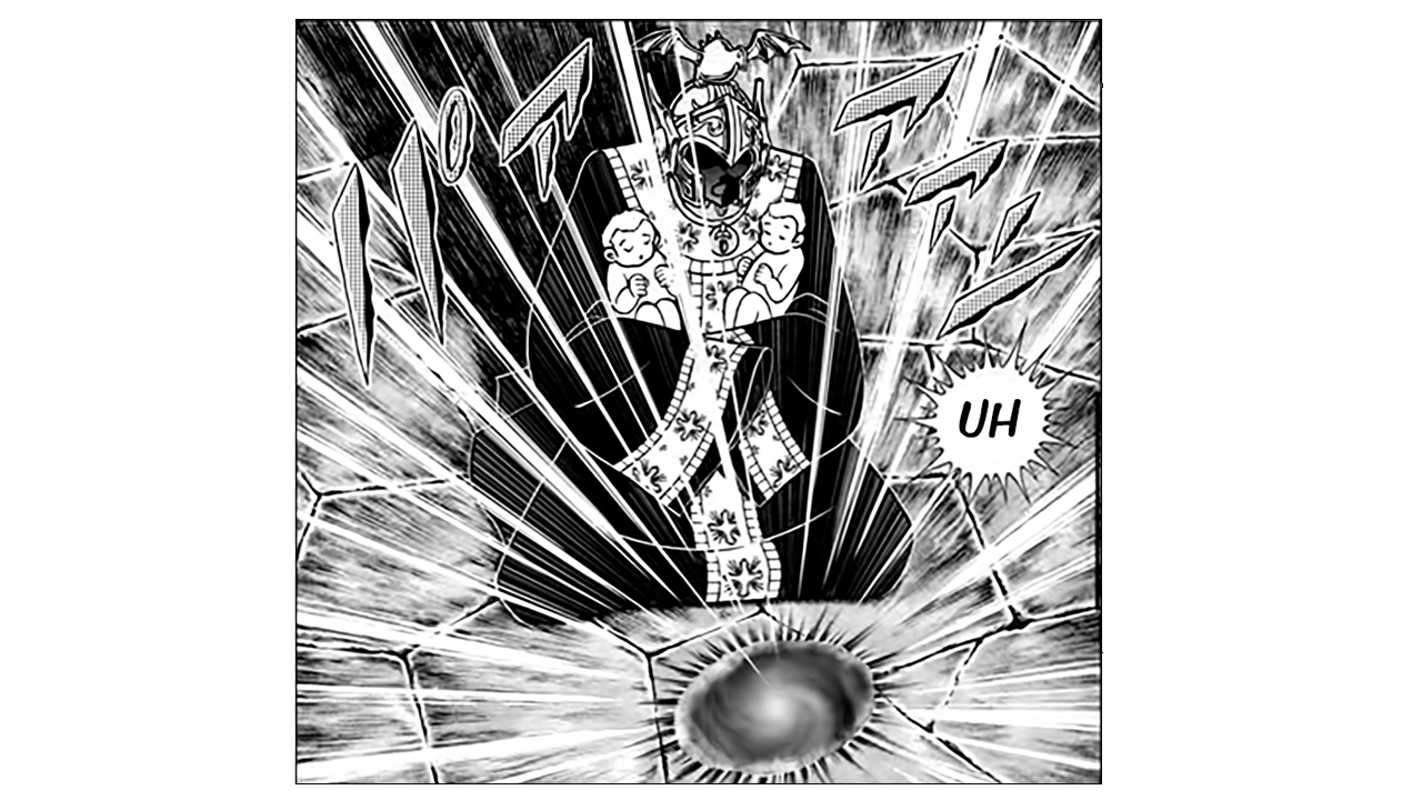 Decisi ad affrontare il Gran Sacerdote, divenuto ormai sempre più simile a un tiranno, i cinque iniziarono la loro corsa contro il tempo, sbaragliando gli altri Cavalieri d’Oro e raggiungendo, infine, le stanze di Saga. Fu proprio qui che, nel corso dello scontro con Seiya, assistemmo a un evento particolarmente simbolico: il volto della giustizia, inciso su uno dei due lati dell’elmo della sacra armatura di Gemini, iniziò a versare lacrime. Un pianto a dirotto – reso ancora più evidente nella trasposizione anime – causato dal dolore provato dalla parte più pura dell’anima di Saga, che, dopo tredici anni di lotta con sé stesso, era ormai completamente in balìa della volontà di Lemur.