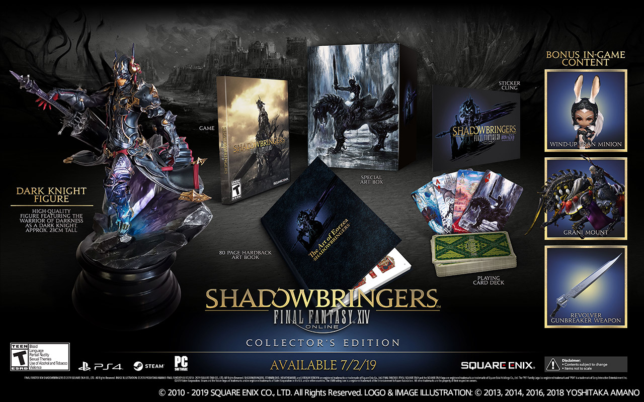 Prima di chiudere vi ricordiamo che Final Fantasy XIV Shadowbringers arriverà il prossimo 2 Luglio e, oltre alla standard edition, sarà disponibile una Collector Edition che includerà un Art Box, una statua del Dark Knight alta 23 cm, l’artbook del gioco, uno sticker, un mazzo di carte e una serie di contenuti in game tra i quali la mount Grani, il minion Fran e l’iconica arma utilizzata da Squall in FF VIII, il Gunblade.