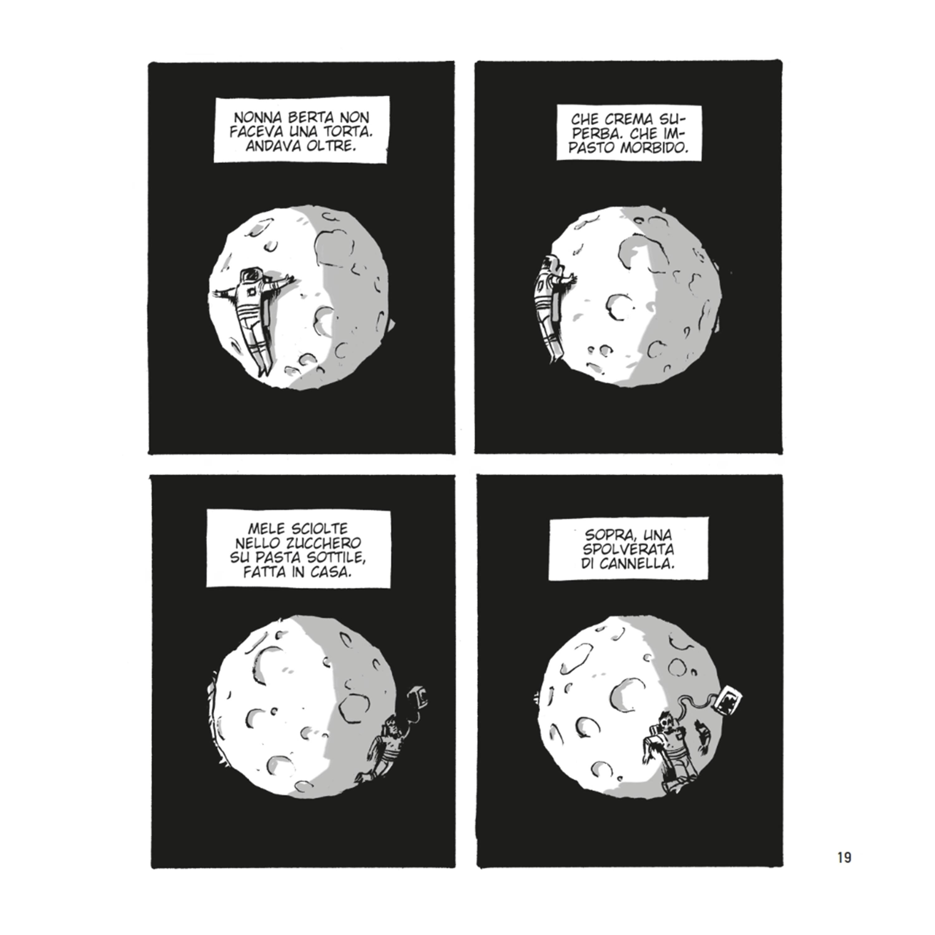 Gianluca Caputo, Responsabile Editoriale per la collana Fumetti Crudi, è entusiasta: “Il progetto MOONED è stato il primo a cui ho messo gli occhi quando abbiamo iniziato i primi accordi con Mammaiuto per ripubblicare i loro lavori più interessanti. Ci abbiamo messo un po’ perché il lavoro che ci attendeva, in questo caso, è stato imponente, a partire dalla scelta del formato (essendo il formato originale particolarmente difficile da distribuire) e dal numero enorme di tavole. Ma alla fine, quando ho visto il prodotto finale, mi sono letteralmente commosso. Un altro fumetto davvero importante e fortemente voluto è nel catalogo della collana Fumetti Crudi. Finché lo sto leggendo, e non sarà una cosa che finirò in fretta, non devo nemmeno preoccuparmi di trovare un posto, grande, in libreria. Grazie a Lorenzo per avermi permesso di realizzare questo sogno”.