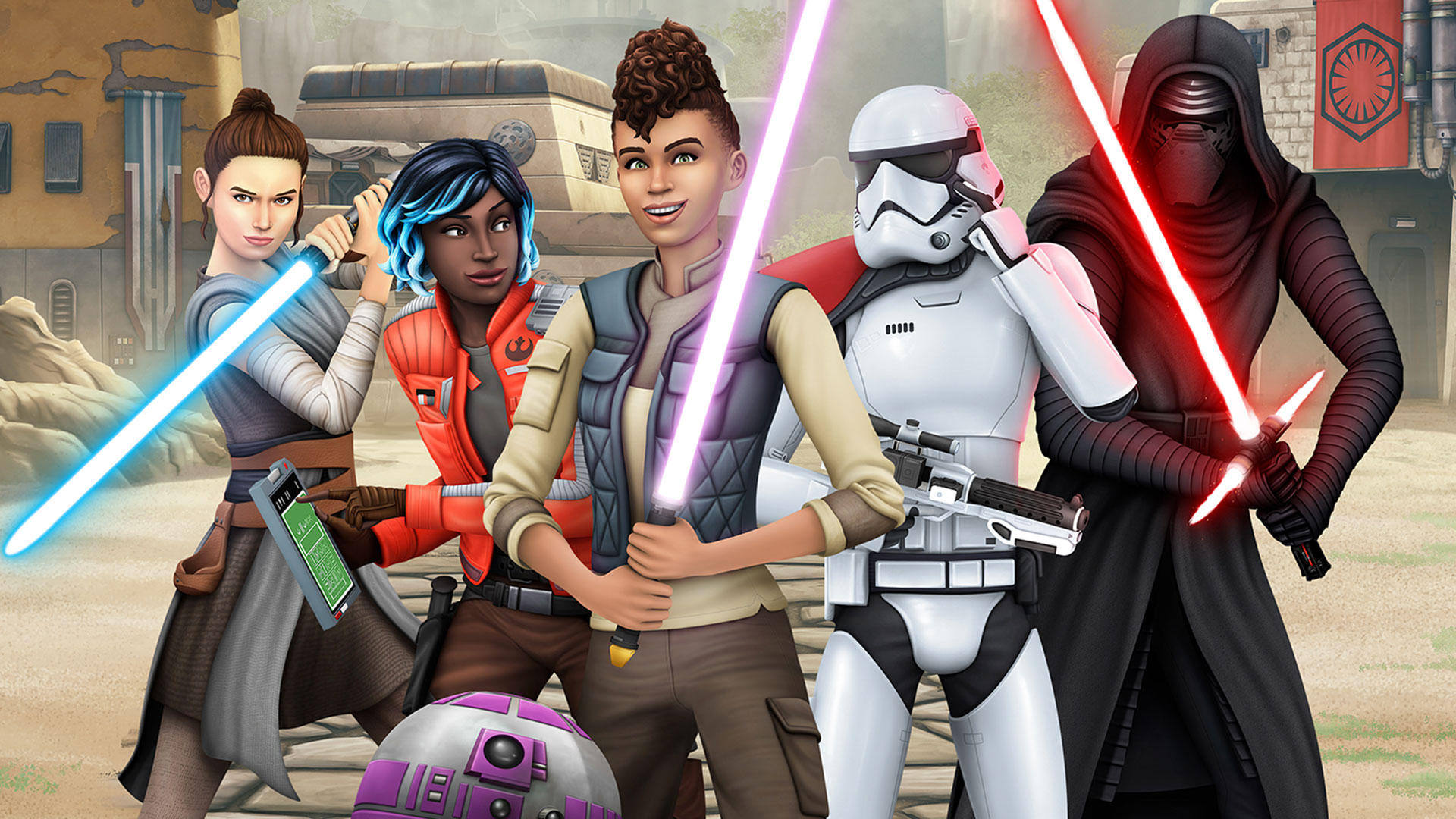 La Resistenza, il Primo Ordine e i contrabbandieri mirano ad avere la meglio sull’Avamposto della Guglia Nera: saranno i giocatori e i loro Sim a determinare chi avrà la meglio. I Sims potranno scegliere di aiutare Rey e Vi Moradi come parte della Resistenza, giurare fedeltà al Primo Ordine sotto Kylo Ren o cercare di guadagnare più crediti con Hondo Ohnaka e i contrabbandieri.