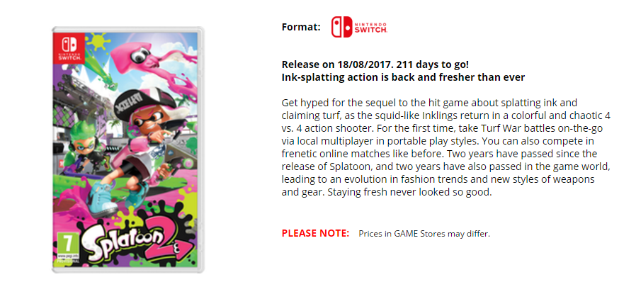 Sebbene nel corso della presentazione non sia stata fissata una data di lancio ufficiale, il rivenditore britannico GAME ha recentemente aggiornato i propri listini, fissandola al 18/08/2017 come potete vedere dallo screen sottostante.