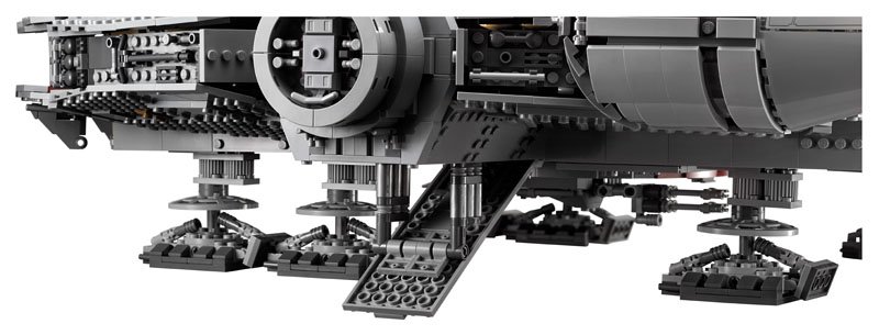 - L’esterno include intricati e dettagliati pannelli della fusoliera, tutti rimovibili, rampa di imbarco abbassabile, cannone blaster nascosto, cabina di pilotaggio per 4 minifigure con tetto rimovibile, parabole sensore rotonda/rettangolare intercambiabili, cannoni a quattro laser superiori e inferiori e 7 gambe di atterraggio.