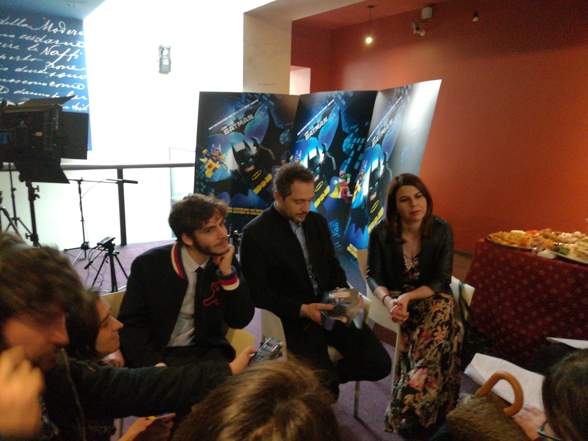 La prima domanda è stata relativa a quali insegnamenti hanno potuto trarre i tre artisti dai personaggi del film. Rompe subito il ghiaccio Geppi Cucciari, esordendo con un ironico “Niente”, per poi argomentare spiegando che per fortuna non si trova di fronte alla drammatica situazione di Batman e dei suoi comprimari, ed anzi fa parte di una famiglia numerosa, ma nonostante questo tutti e tre i doppiatori presenti sono stati felici di partecipare ad un film che “dà modo a questa tematica di arrivare ai bambini”.