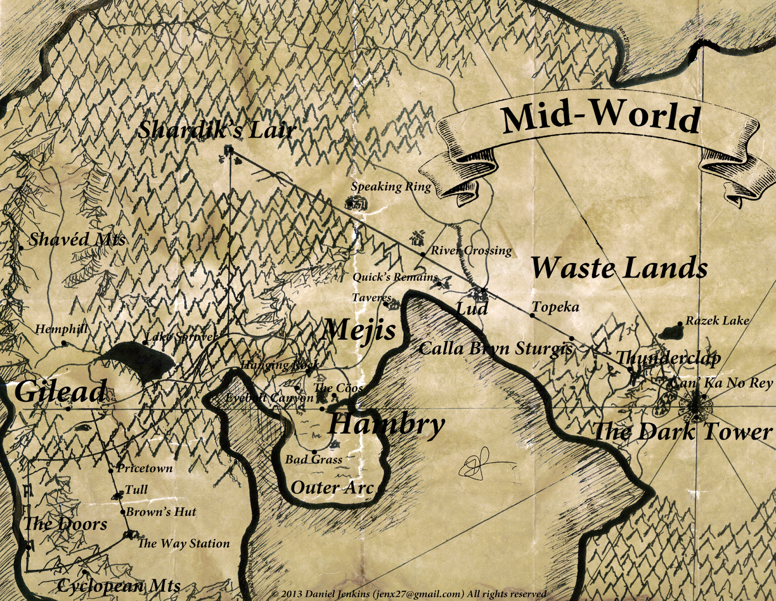 Da Tolkien, King sembra aver mutuato una lezione importante: l’ambientazione deve essere ben definita ed essa sarà sempre preminente su quanto narrato. In effetti il Professore, nella realizzazione del Signore degli Anelli e dell’epopea di Arda, prese mitologia, folklore e opere letterarie a lui care per rimodellarle in modo da creare un contesto originale. King sembra aver fatto la stessa cosa, non limitandosi a prendere spunto da quanto realizzato da Tolkien. Si è ispirato direttamente al suo lavoro e, attenzione, non ai frutti di esso, ma al suo metodo, al suo modo di realizzare e concepire la storia. In questo, King sembra aver trasceso quanto indicato dal suo illustre predecessore, proponendo una nuova concezione di quell’opera di mitopoiesi che Tolkien, nei suoi scritti, usava come metodo di lavoro. La base per poter ricreare questo lavoro in King si basa su modelli preesistenti come il mito e le tradizioni popolari, ma decisamente differenti rispetto a Tolkien. Il grande retaggio che ha accolto il maestro dell’orrore richiama, sotto diversi punti di vista, una rielaborazione della Terra Desolata e quelle opere che sono state per essa motivo di spunto e ispirazione.