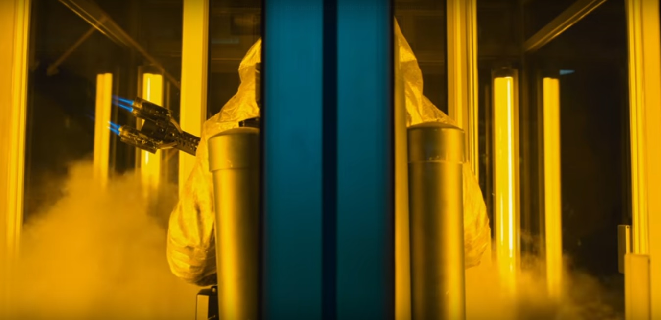Ad un certo punto si può notare un uomo in una tuta anti contaminazione, impugnare quello che sembra essere un lanciafiamme. Non penso ci siano molti dubbi: si tratta di qualcuno appartenente all’equipe del laboratorio segreto in cui il Dr. Brenner compiva esperimenti su Undici e sul Sottosopra. È plausibile che il lanciafiamme serva per scacciare od uccidere le mostruosità che si annidano nel Sottosopra, ed a questo punto è lecito chiedersi se per caso sia ancora attivo il portale principale nei sotterranei del laboratorio, o se magari si sia aperto un portale altrove. Non dimentichiamoci poi della nostra prima ipotesi, quella relativa all’effettiva sovrapposizione dei due mondi. In quel caso un lanciafiamme sarebbe sicuramente utile!