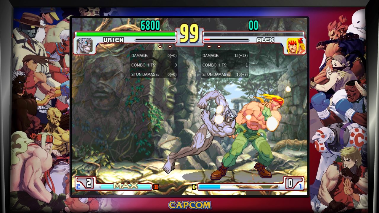 Capcom ci propone ben 12 capitoli della serie. I più significativi della golden age sostanzialmente, focalizzandosi su quelli che hanno calcato la scena competitiva e delle sale giochi. Nello specifico abbiamo il primo Street Fighter, Street Fighter II, Street Fighter II Champion Edition, Street Fighter II Hyper Fighting, Super Street Fighter II, Super Street Fighter II Turbo, Street Fighter Alpha, Street Fighter Alpha 2, Street Fighter Alpha 3, Street Fighter III, Street Fighter III Double Impact, Street Fighter III Third Strike. Tutti rigorosamente arcade perfect. Sono infatti state prese le versioni da sala con tutti i pregi e difetti. Avremmo riproduzioni dei giochi fedeli al pixel ma senza modalità ed extra provenienti dalle versioni casalinghe. È stato aggiunta solo l’utile modalità pratica per tutti i titoli. Cosa che comunque non ci dispiace visto che per alcuni episodi è inclusa per la prima volta. Capite bene che il valore del pacchetto è dato anche solo dalla rarità di alcuni capitoli difficilmente recuperabili altrimenti, come il primissimo e un po’ rozzo Street Fighter, forse dal valore ludico poco rilevante ma dall’altissima importanza storica, o come la prima versione di Street Fighter III e Double Impact, bistrattati rispetto al Third Strike, generalmente unico punto di riferimento per quel che riguarda la terza iterazione del franchise, nonostante anche le prime due siano interessanti nei loro limiti e presentino caratteristiche uniche.