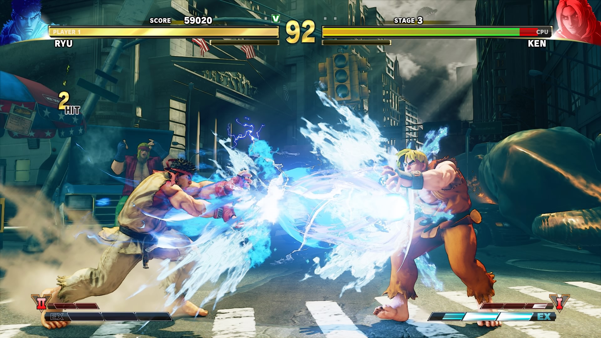 La più importante novità introdotta, tanto richiesta dai fan, è la modalità arcade per giocatore singolo. Capcom per farsi perdonare l’attesa, ha fatto con questa modalità un lavoro particolare per renderla ben più interessante di quanto ci si poteva aspettare. Innanzitutto essa è divisa in 6 diverse sotto-modalità, che richiamano i nomi di alcuni capitoli della saga, ovvero Street Fighter I, SF II, SF Alpha, SF III, SF IV e SF V. A seconda del capitolo scelto, cambieranno i personaggi che potrete utilizzare. Ad esempio per SF avrete a disposizione solo i combattenti classici della saga, che richiama quindi il roster originale. Inoltre, sempre a scopo citazionistico, cambierà anche il numero di incontri per concludere la partita e il “boss” finale. Quindi per rimanere su SF II avremo 8 incontri e Bison come scontro finale. Inoltre, sono stati aggiunte le ending personali per ogni personaggio, che consistono in schermate disegnate che con delle vignette che riassumono velocemente qualche evento riguardante il guerriero con cui avete superato la sfida. Niente di particolarmente trascendentale ma fa veramente piacere ritrovare un po’ di cura in queste piccole cose. Il punteggio di ogni partita avrà le sue classifiche in rete e, dulcis in fundo, a seconda della difficoltà a cui finirete l’Arcade, potrete sbloccare una illustrazione storica della saga (ce ne sono circa 200 da collezionare). Ah, è presente anche una riedizione del classico bonus stage dei barili, giusto per non farsi mancare nulla.