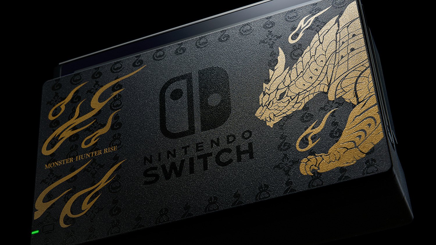 Come potete vedere dalle immagini divulgate da Nintendo, sia la docking station che la console sono decorate con simboli dorati che richiamano il titolo di casa Capcom.