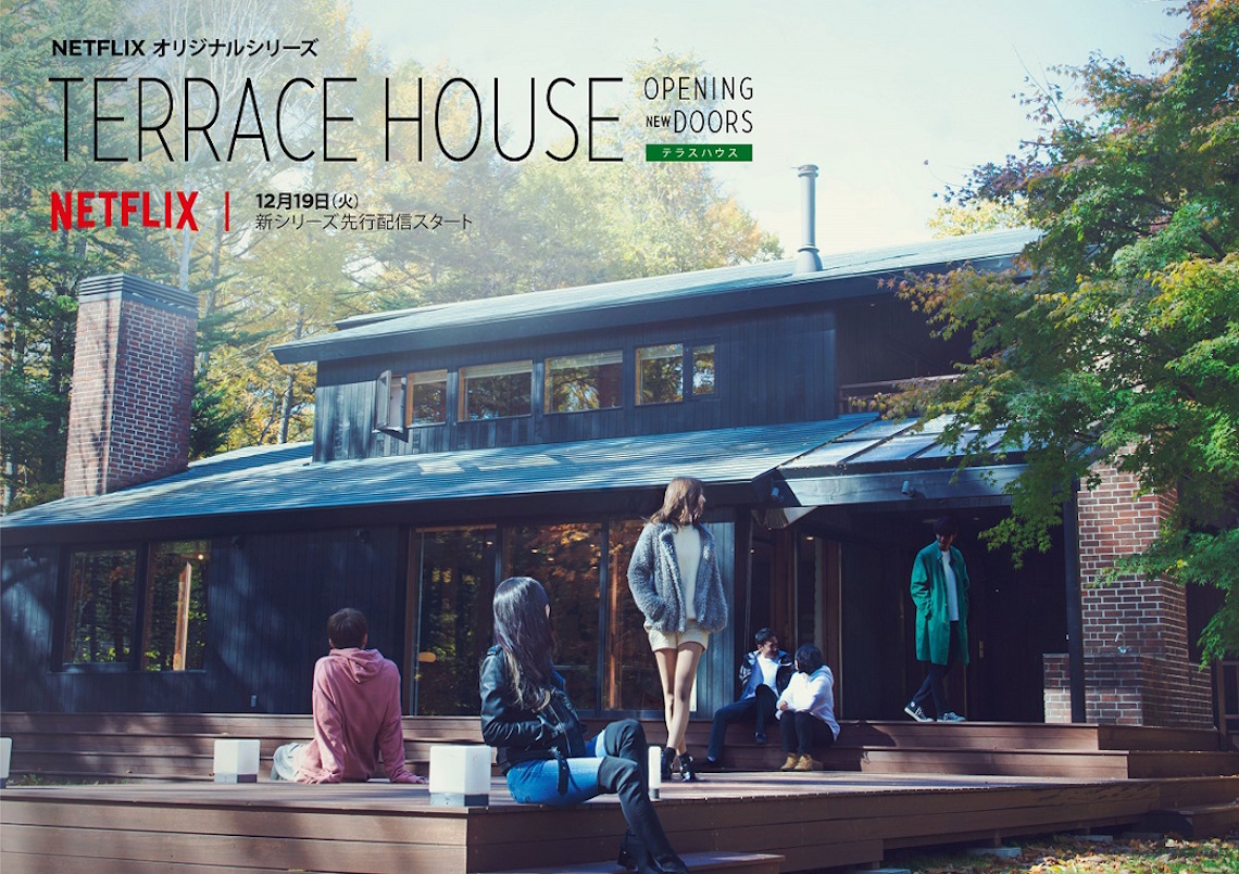 Nato nel 2012 e durato per otto stagioni fino al 2014 con il sottotitolo Boys x Girls Next Door, Terrace House arriva come co-produzione di Netflix e FujiTV anche sulla piattaforma streaming americana. Le nuove stagioni hanno durata di un anno e, rispetto alla prima, cambiano sempre il setting: Boys x Girl in the City si svolge a Tokyo; Aloha State è ambientato alle Hawaii; Opening New Doors si sposta in montagna, a Karuizawa; la nuova stagione, dal 10 settembre su Netflix, intitolata Tokyo 2019-2020, ritorna nella capitale.