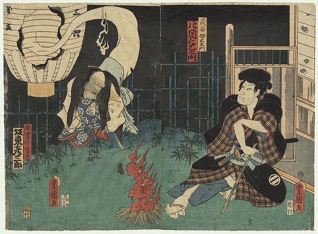 Iemon ovviamente era disperato e mentre fingeva di preoccuparsi della moglie, continuava a pensare ad un altro modo per sbarazzarsi della moglie. L’occasione non si fece attendere, Oiwa, una sera, volle uscire per una passeggiata. Arrivati nei pressi di una scogliera, Iemon si guardò intorno assicurandosi che nessuno li potesse vedere e, senza pensarci due volte, la spinse di sotto. Per assicurasi che fosse realmente morta e per non destare sospetti, recuperò il corpo raccontando a tutti gli altri del brutto incidente. Organizzò poi un suntuoso funerale senza badare a spese e con tanto di corteo perché tanto, a breve, sarebbe divenuto finalmente ricco.