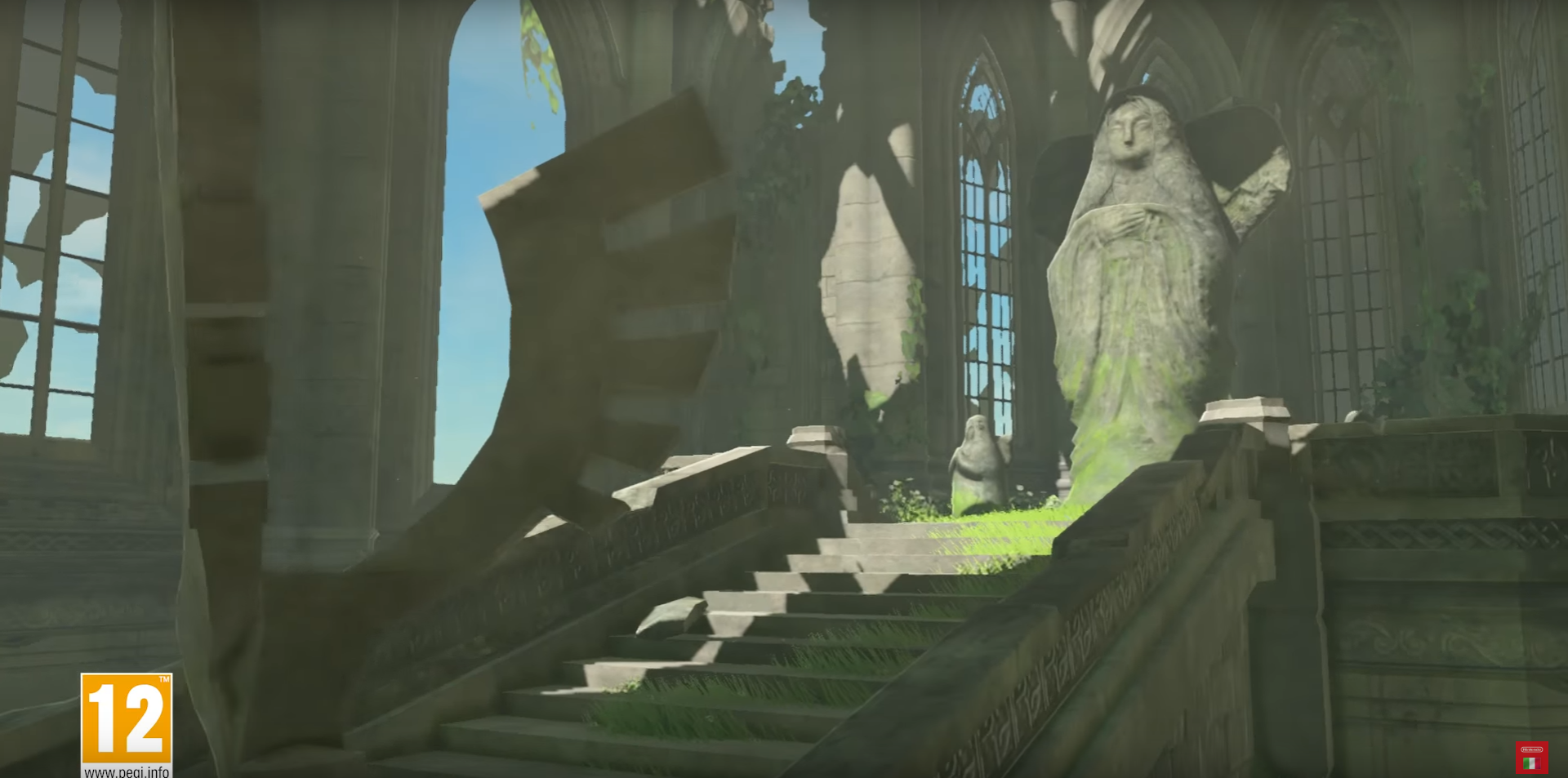 Era lecito aspettarsi il ritorno di molti iconici luoghi di Hyrule. Sappiamo infatti che questo Zelda sarà ambientato come sempre nello stesso universo degli altri capitoli. Ovviamente non è chiara ancora la sua collocazione temporale ma se dovessi scommettere direi che ci troviamo nel futuro rispetto alle due linee temporali che si sono create da Ocarina of Time in poi. Detto questo, riconosciamo tra le sequenze del trailer luoghi familiari come la Death Mountain, la città di Hyrule e il Tempio del Tempo con la statua della dea Hylia. Quando appare quest’ultimo, si sente anche la voce di una persona anziana che ci racconta la storia di questa terra, del regno di Hyrule e di Calamity Ganon. Molto probabilmente si tratta di Impa, un’altra figura positiva ricorrente nella mitologia della serie.