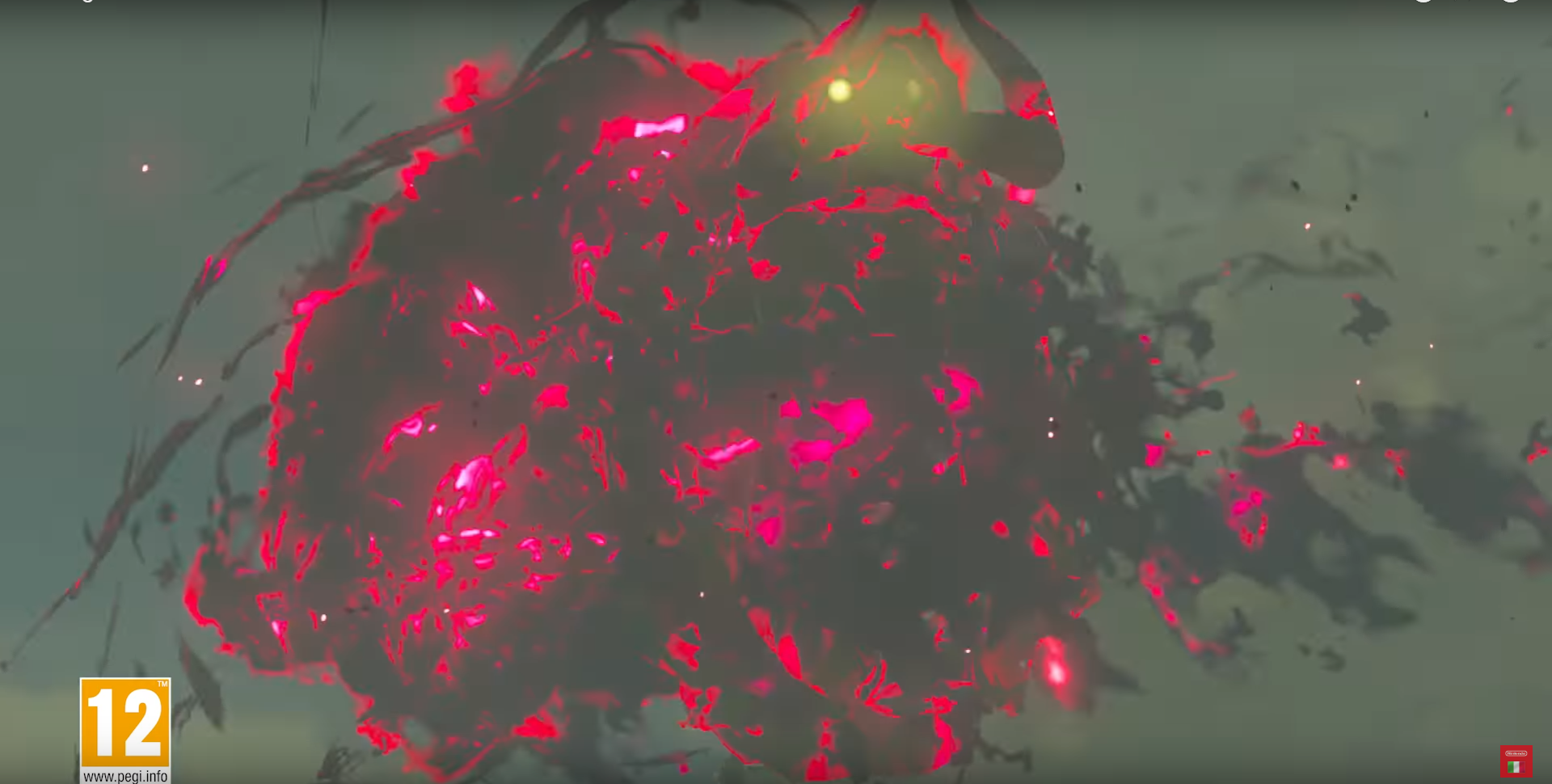 Ed ecco che in questo piccolo frangente vediamo probabilmente per la prima volta la manifestazione di Ganon, possiamo riconoscere infatti nella nube rossa le forme bestiali e le zanne che contraddistinguono il suo reale aspetto, quando assume le sembianze di un “cinghiale demoniaco”.