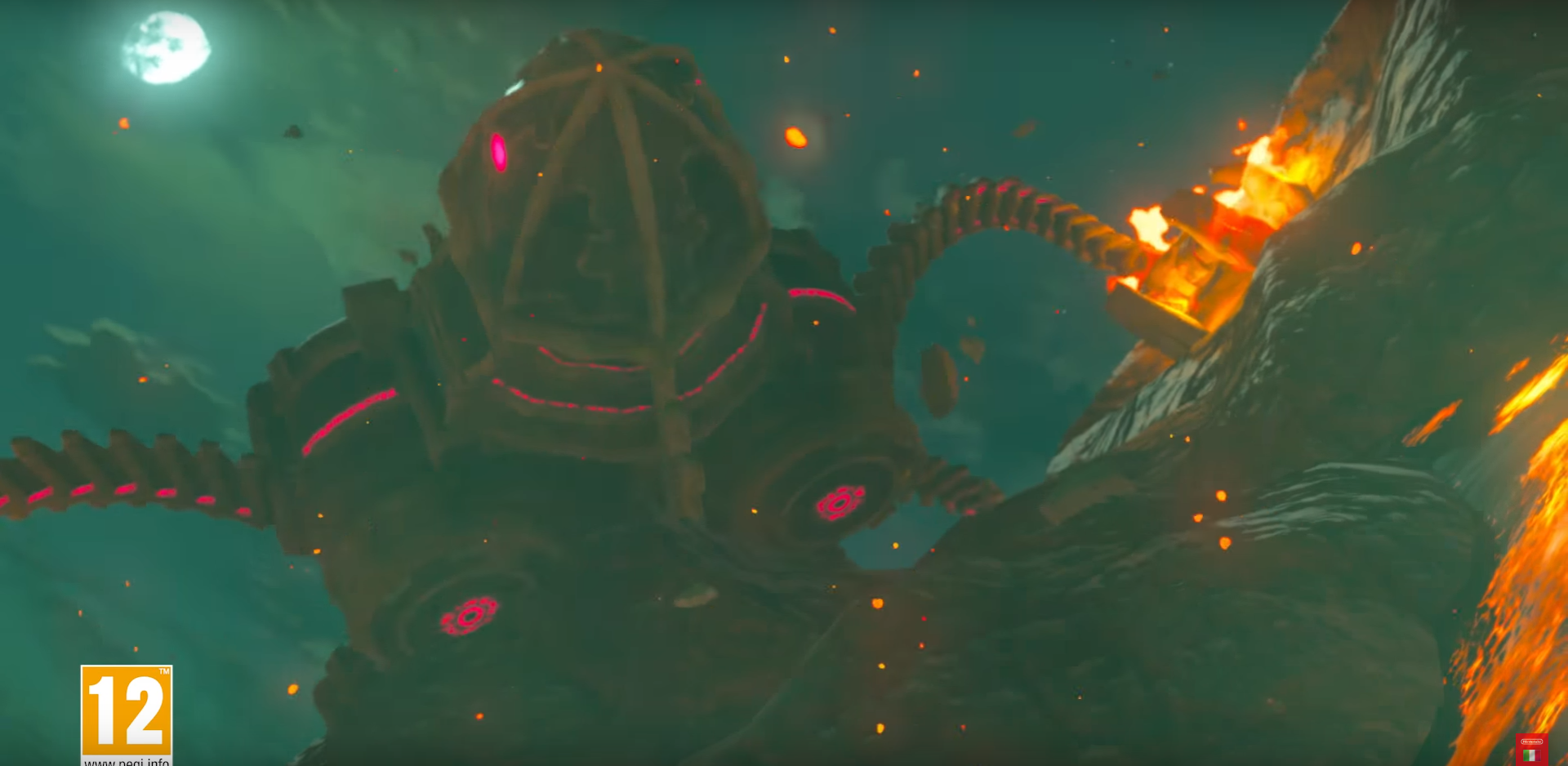 Ci sono due momenti nel trailer in cui si vedono dei colossi meccanici giganti e a giudicare dall’area circostante, possiamo intuire che si tratti dei guardiani malvagi delle rispettive regioni. Sempre seguendo la stessa intuizione probabilmente è lecito aspettarsene quattro nell’intera avventura, in corrispondenza dei famosi pilastri intorno al castello di Ganon. Facile intuire che una volta sconfitti tutti la barriera cadrà e ci permetterà di affrontare il combattimento finale.