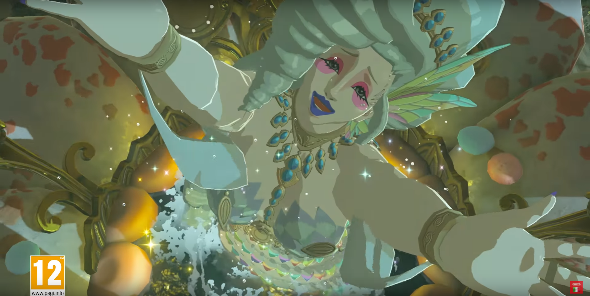 Questa sgargiante… signorina, dall’estetica molto eccentrica e dai lineamenti non cosi aggraziati, quasi sicuramente è una Great Fairy, di quelle che di solito stanno ubicate in luoghi molto ben nascosti ed emergono dalle fontane magiche. Il loro supporto ci permette di migliorare gli attributi magici o di salute, ma a volte ci forniscono anche oggetti utili. Chissà se sono presenti anche le piccole fatine che ripristinano la vita di cui le Great Fairy sono sostanzialmente le leader. A questo punto non è da escludere.