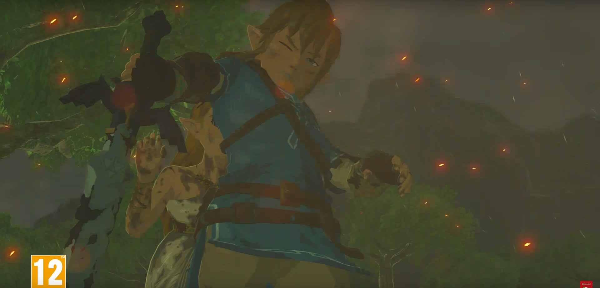 Ci sono molte scene che mostrano Link insieme a Zelda che hanno degli elementi in comune: Link ha la Master Sword come unico equipaggiamento e i due sono chiaramente sporchi di terra o comunque visibilmente provati. Queste sequenze, alternate nel trailer in maniera molto veloce e confusionaria, molto probabilmente mostrano il passato, quello che è successo 100 anni prima. Link e Zelda per un qualche motivo erano in fuga ma dei guardiani meccanici li hanno fermati, Link per proteggere Zelda, ci è “rimasto secco” e questo è il motivo per cui ha dovuto riposare tutto questo tempo nella torre della resurrezione. Ovviamente questa ricostruzione degli eventi è del tutto speculativa. Ma in effetti tutto tornerebbe.