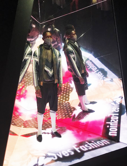 La suggestiva installazione si compone di una serie di piramidi a specchio di diverse misure e di proiezioni di Pikachu e dell’iconica Poké Ball, allo scopo di mostrare il processo creativo della moda.