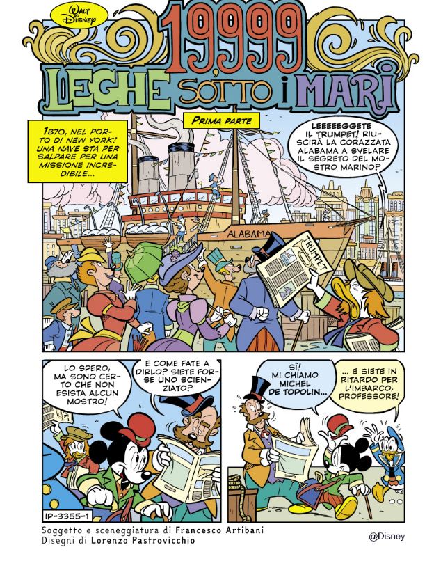 Una nuova imperdibile avventura è pronta a conquistare tutti i lettori di Topolino: si tratta di 19.999 leghe sotto i mari, ispirata al classico della letteratura per ragazzi di Jules Verne, il celebre 20.000 leghe sotto i mari, realizzata in occasione del 150esimo anniversario dalla sua pubblicazione. La storia – sceneggiata da Francesco Artibani e disegnata da Lorenzo Pastrovicchio – divisa in due episodi, è in edicola su Topolino 3355 a partire da mercoledì 11 marzo.