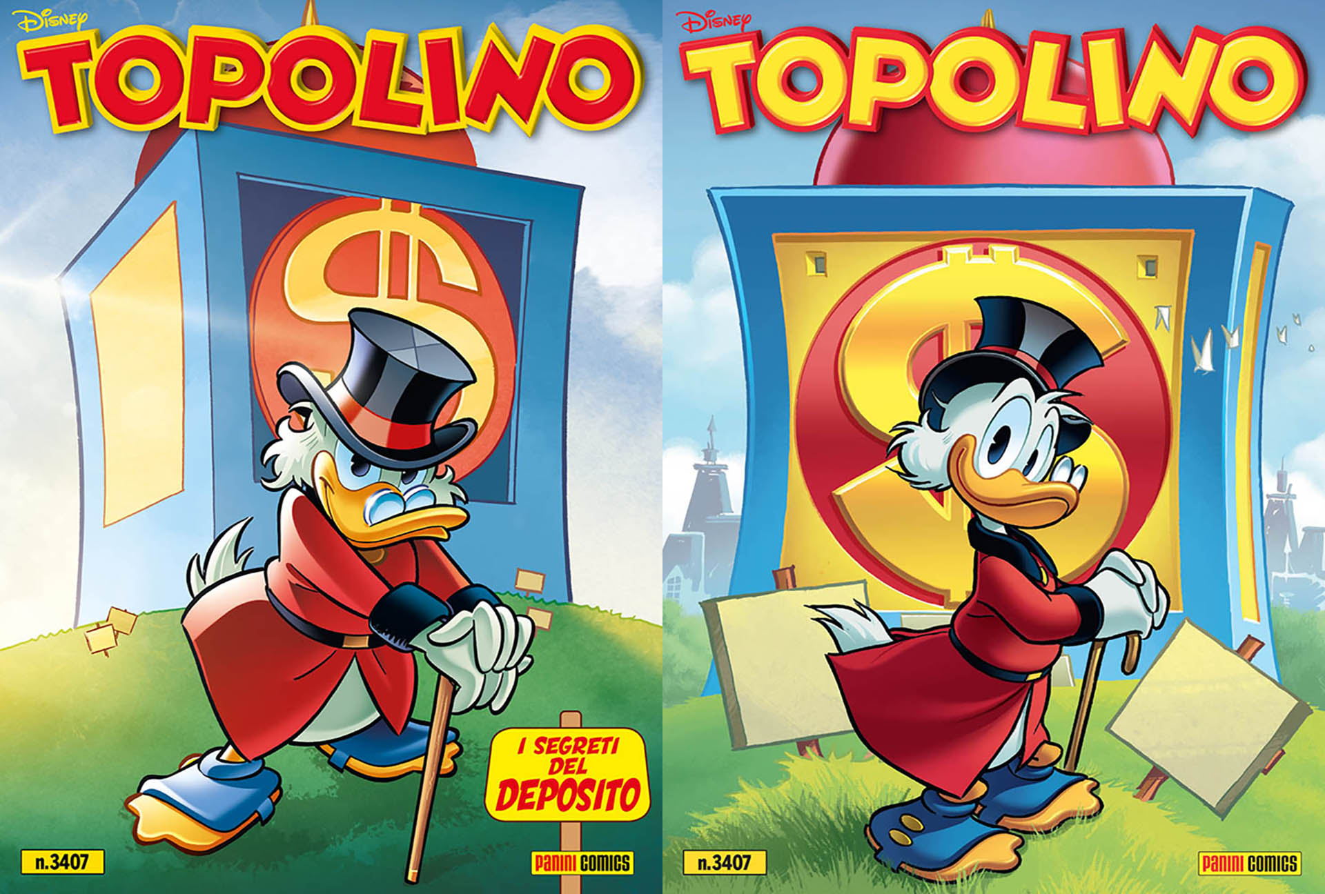 Al Deposito è dedicata la cover di Topolino 3407 a cui si affianca una variant cover sempre con protagonista Zio Paperone con aletta apribile in PVC e brillanti effetti metallici, disponibile solo su Panini.it). Lo stesso numero è anche disponibile con una seconda cover variant da fumetteria, caratterizzata da elementi fluo e dall’effetto lucido/opaco, pensata per un’altra grande celebrazione di questi giorni: i 25 anni di PK, omaggiati nella storia inedita PK – Una Leggendaria Notte Qualunque, firmata da Alessandro Sisti e Lorenzo Pastrovicchio.