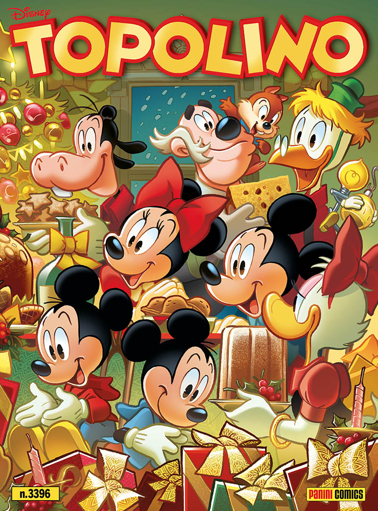 Topolino 3396, disponibile da mercoledì 23 dicembre, sarà come da tradizione un numero “100% Christmas”, con tutte le storie ad ambientazione natalizia, e avrà una cover “sfavillante”, che unita a quella del numero 3395, creerà un’unica, suggestiva immagine che porterà il lettore nell’atmosfera magica del Natale nella grande famiglia di Topi e Paperi.