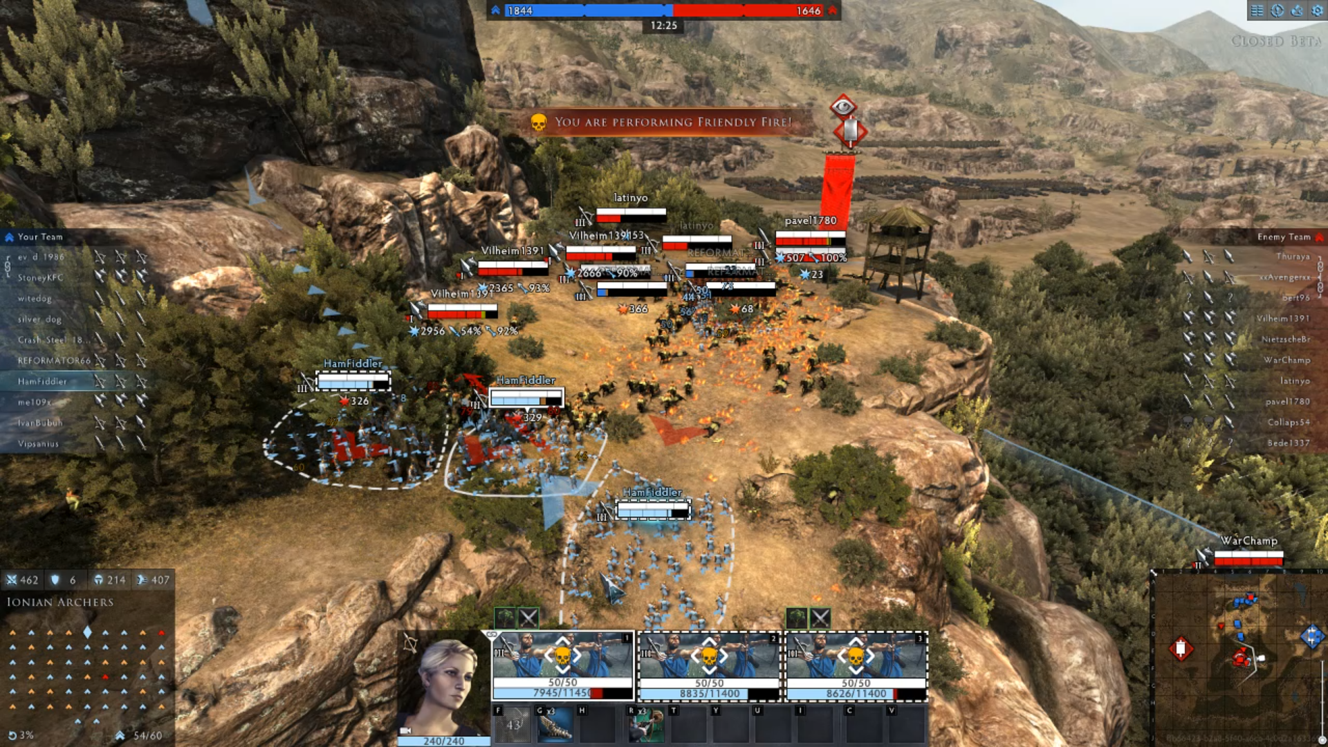 Total War Arena è un Free To Play completamente accessibile a tutti (con dei requisiti minimi sorprendentemente umani!) che mette 10 giocatori contro altri 10 giocatori! In futuro sarà anche prevista non solo la versione PvP ma anche PvE. Ogni comandante, avrà diritto a comandare 3 unità e dovrà, insieme agli altri giocatori far procedere lo sforzo bellico in due sole direzioni: la conquista della base nemica o la totale distruzione delle forze avversarie. Il gioco si dimostra ben bilanciato, infatti, anche rushando all’impazzata sulla base nemica (sempre se si evitano i difensori) catturarla non sarà questione di secondi, bensì di lunghi minuti, in cui i difensori avranno tutto il tempo di rispondere all’invasione nemica. Come dicevamo, nonostante i requisiti minimi siano bassi, se spinto oltre la soglia minima, potremo comunque godere di un’ottima visuale, che ci permetterà anche, come ben conosciamo, di scendere fino a vedere il singolo fante combattere.