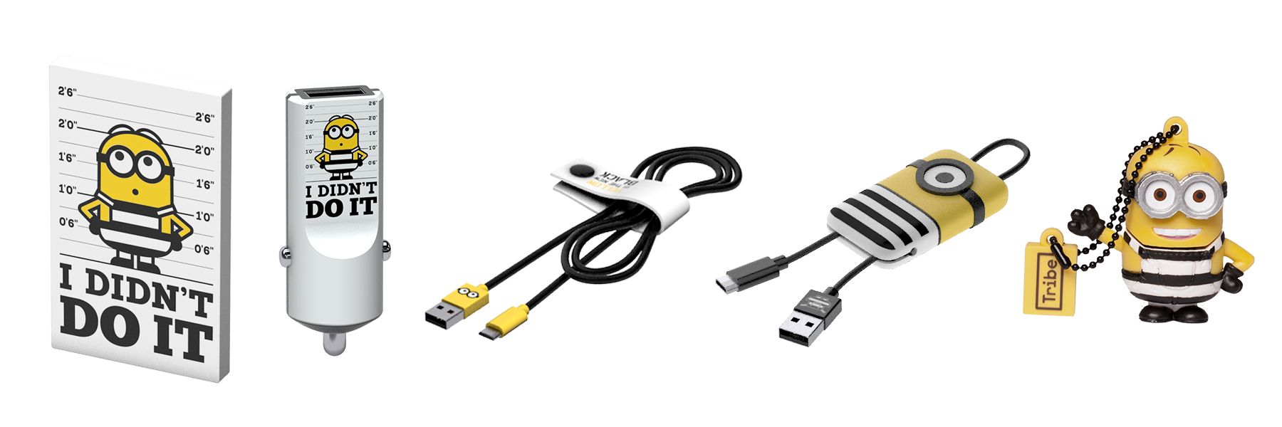 Tribe – leader per design, produzione e distribuzione di chiavette USB e accessori tech su licenza – ha scelto di ispirarsi ai Minions per presentare un’intera collezione dedicata al film in uscita ed un’importante novità di prodotto: un cavetto USB studiato per essere utilizzato anche come portachiavi, proposto in due versioni grafiche che rendono omaggio ai divertenti omini gialli: una nel classico costume giallo e blu e l’altra nelle vesti di un carcerato – sappiamo infatti dai trailer del film che i Minions diventeranno i boss della prigione: le motivazioni che li spingeranno al loro ingresso in carcere non sono state ancora svelate, ma è certo che, lungi dal deprimersi, i nostri simpatici amici diventeranno subito protagonisti e ne combineranno di tutti i colori!