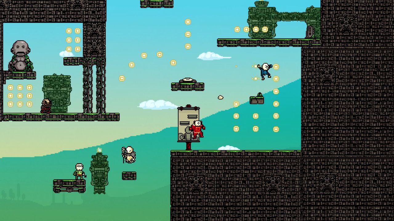 Come prevedibile per un platform, Unit 4 mette da parte una storia articolata per concentrarsi sul gameplay: c’è un impero spaziale malvagio, e ci sono quattro eroi che devono sconfiggerlo. Fine. Nonostante questa semplicità, il titolo di Gamera riesce a costruire situazioni decisamente simpatiche, permettendo al giocatore di atterrare su pianeti in cui l’unica attività sarà leggere qualche linea di testo che descrive cosa accade, come nel più classico degli RPG occidentali d’altri tempi. Proprio in questi frangenti il citazionismo si spreca, spaziando da argomenti cari ai nerd all’attualità, tra citazioni e rimandi. Ma stiamo parlando di un gioco di piattaforme, e quanto vi abbiamo appena detto è chiaramente solo un contorno, utile a fare un po’ di contesto, a quello che è poi il l’aspetto più importante del gioco: i saltelli.