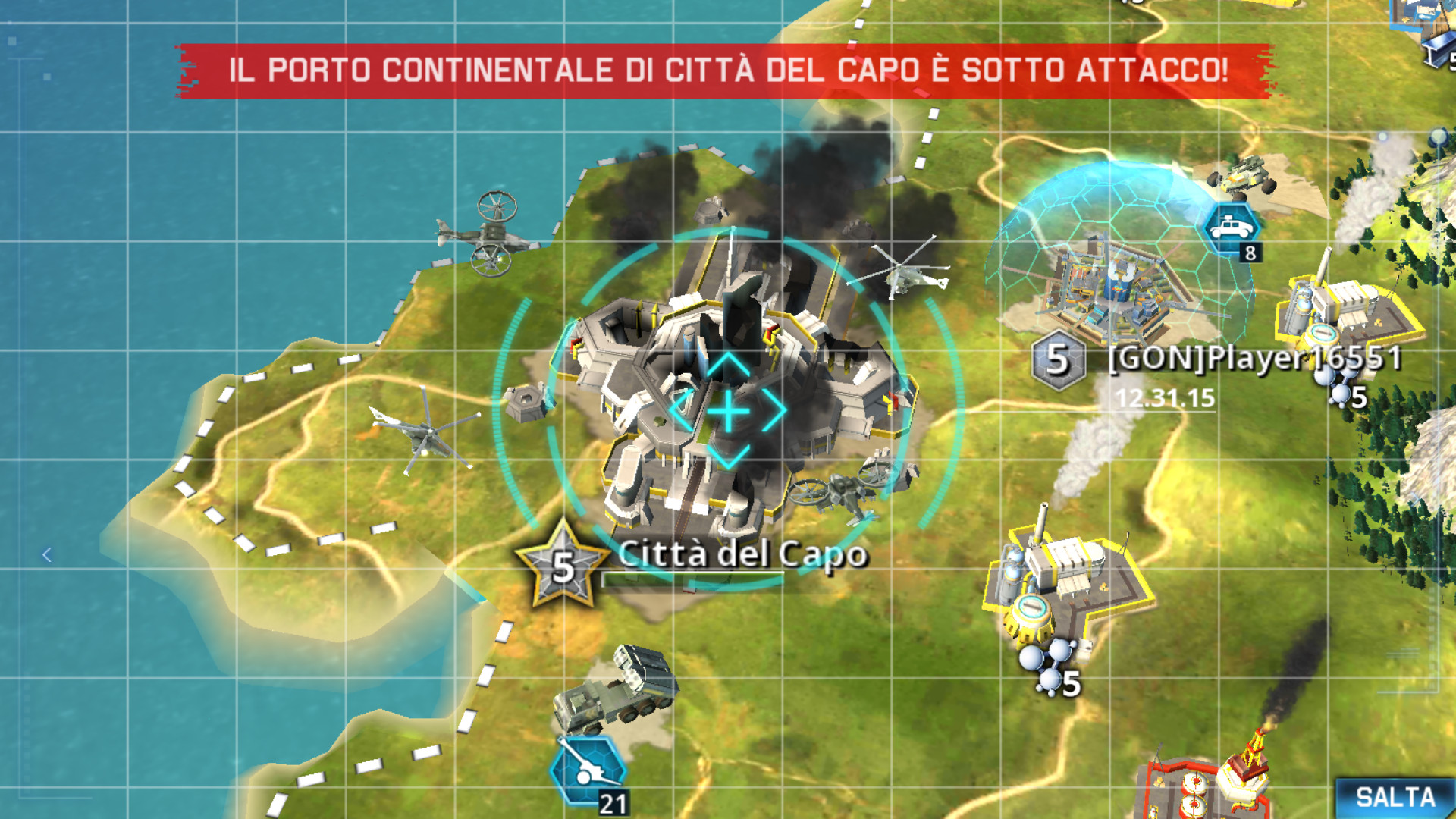 Il gioco si contraddistingue per “donare” uno scudo della pace (impossibilità di essere attaccati) alla nostra base, per permetterci di avere tempo sufficiente per prepararci al crudele mondo che c’è la fuori. Avremo quindi, in soldoni, 8 giorni per preparare il nostro campo base al meglio e per addestrare truppe. Sarà inoltre possibile andare ad attaccare base ribelli (eserciti PNG) e andare a raccogliere risorse con le nostre truppe. Il gioco, sopratutto nella fase iniziale, come è normale, scorre piuttosto velocemente e vedremo crescere rapidamente la nostra base. Salvo poi, giustamente rallentare quando i nostri edifici saranno più o meno tutti di livello alto.