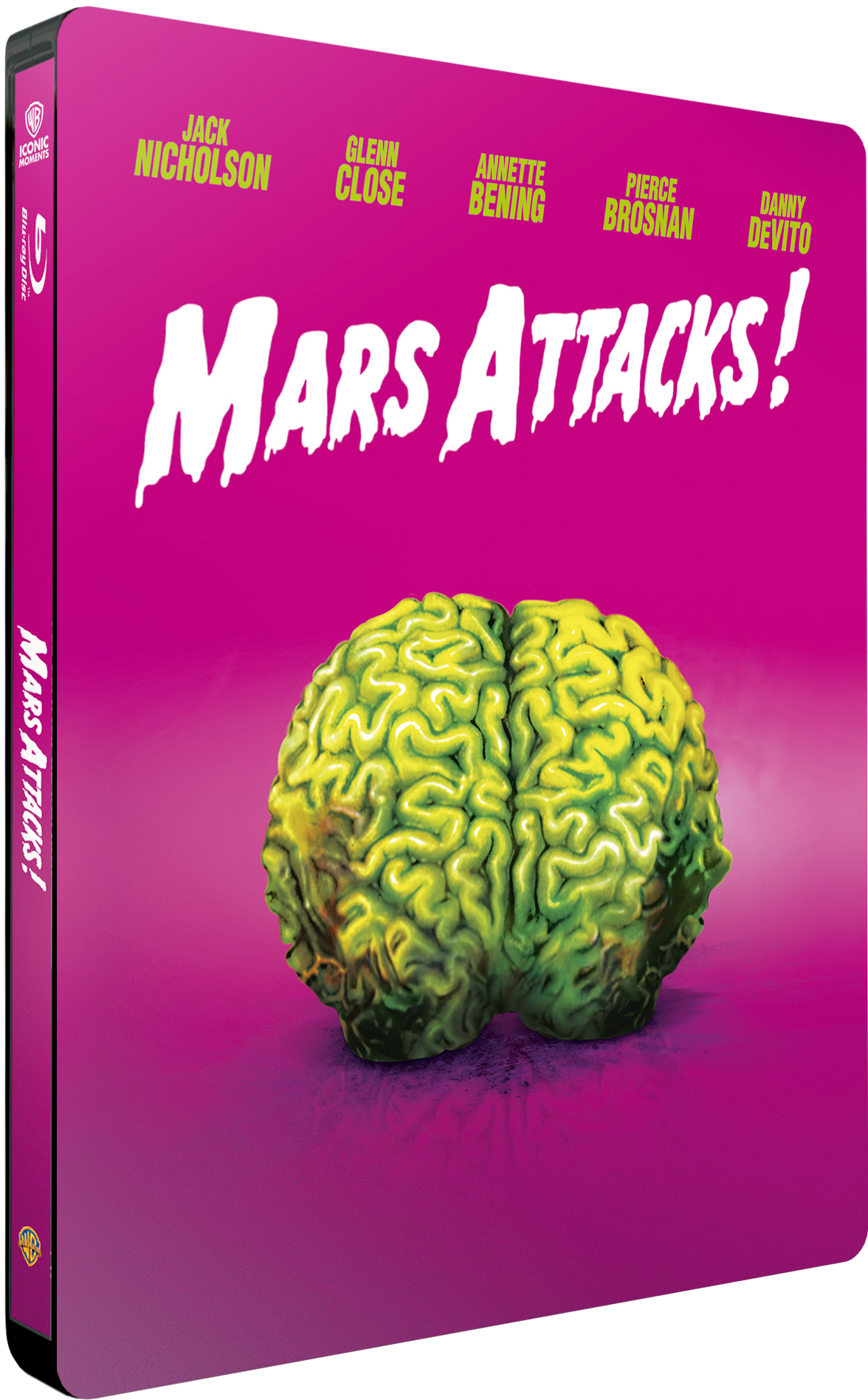 Contemplate le stelle che brillano nella galassia. Jack Nicholson (in un doppio ruolo), Glenn close, annette bening, Pierce Brosnan, Danny devito e moltissimi altri! Tremate all’arrivo di malvagi invasori verdi armati di pistole a raggi, dotati di enormi cervelli viscidi – e animati grazie ai più sofisticati effetti speciali. Trattenete il fiato mentre l’assemblea legislativa degli stati uniti viene distrutta (ma non temete, restano ancora 2 dei 3 organi governativi a lavorare per noi). Rabbrividite quando la terra comincia a respingere l’attacco grazie ad un’arma inaspettata. Beccatevi questa, marziani.