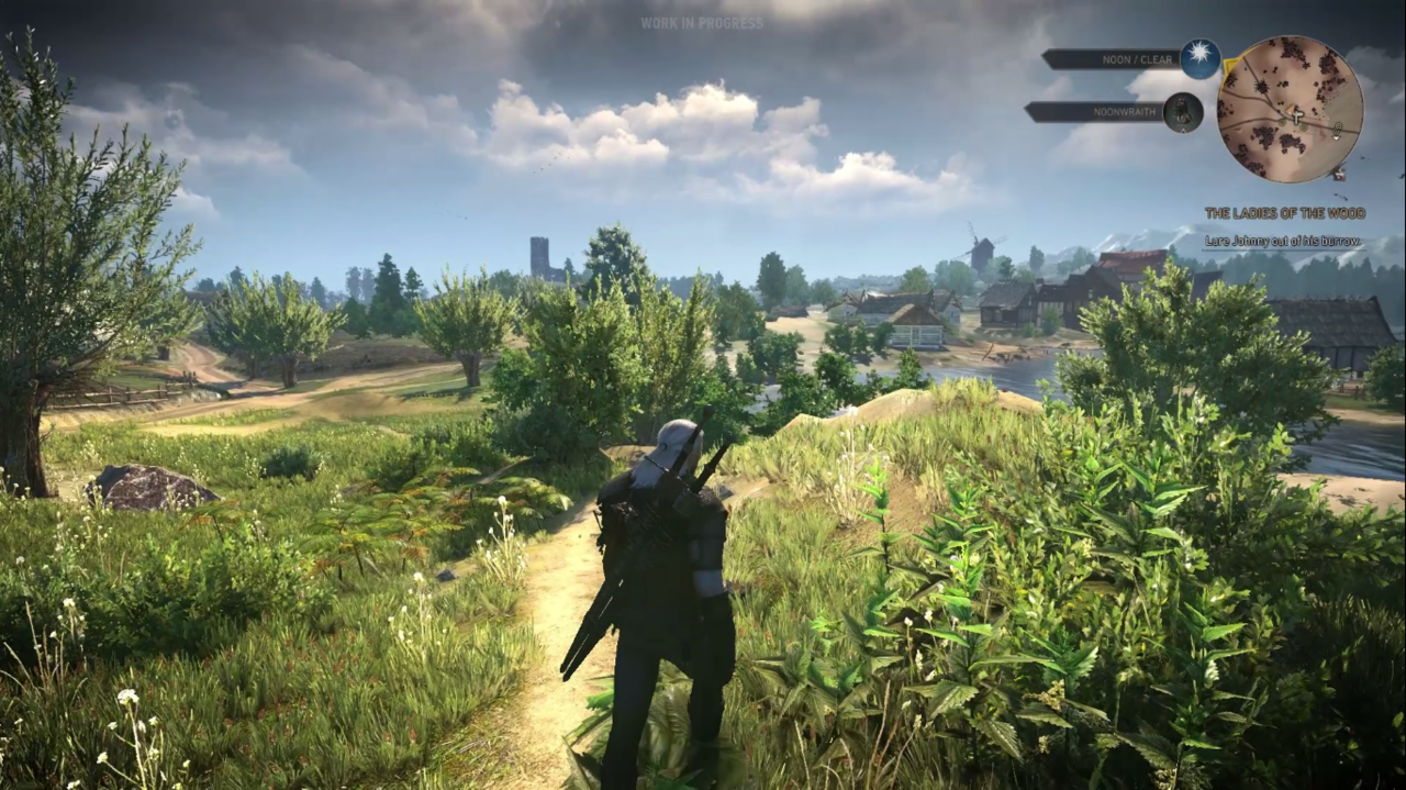 Presentatoci in doppia versione (PC e Xbox One), The Witcher 3 si è mostrato per mezzo di una build non di molto lontana a quella finale in cui, tuttavia, mancavano ancora diversi accorgimenti e rifiniture su cui il team è ancora a lavoro. Ecco perché in questo articolo abbiamo deciso due cose: la prima è quella di non parlarvi affatto della trama che, seppur in minima parte, manteneva nella nostra build le sue premesse e perché, come intuirete, la nostra prova si è basata più sulle caratteristiche tecniche che su quelle narrative. La seconda è quella di parlare di quei difetti proprio da evidenziare, lasciando da parte qualsiasi remora per quelli che invece sono difetti tipici di una build acerba, consci che – almeno per ora – essi potrebbero non presentarsi nella release rifinita del gioco. Ciò detto, lo Strigo si è presentato al nostro test in gran forma, evidenziando, su tutto, quella che è una caratteristica tipica del modus operandi di CD Projekt Red, ossia la dovizia nei dettagli. Questi, presenti in entrambe le versioni da noi provate, infatti, sono decisamente appaganti e contribuiscono a cesellare quello che è un mondo di gioco vivo e vibrante in cui ogni cosa è perfettamente contestualizzata e incastonata. Certo, i dettagli sono anche un’occasione per comprendere una cosa: The Witcher 3 è un gioco per PC. Anche se questa affermazione va presa con le pinze e con le dovute precauzioni. Il lavoro fatto su console (noi abbiamo provato la versione One, ma ci è stato garantito che non vi saranno differenze sostanziali con quella PS4) è stato certosino e la versione One non è affatto sfigurata dinanzi a quanto visto su PC, tuttavia è proprio qui che il gioco da – ovviamente – il meglio di sé, con un’ottimizzazione di fino capace di restituire un mondo quanto mai magnifico e immersivo, massicciamente impreziosito da una serie di effetti che, purtroppo, sono stati in parte persi su console, vittime dei compromessi offerti dalle macchine casalinghe. In ogni caso, al di là di quello che può essere un massiccio uso dei particellari piuttosto che degli shader, The Witcher 3 offre degli scorci visivi decisamente mozzafiato in cui l’alternarsi delle diverse condizioni atmosferiche e cronologiche crea paesaggi credibili e, soprattutto, realistici, in quello che è un continuo alternarsi tra uomo e natura in cui si incastrano villaggi rurali, roccaforti, ma anche ruderi inghiottiti dal verde dei boschi, occasionalmente attraversati da creature che, autonomamente, e nella loro biodiversità, creano un sistema dinamico in cui il giocatore deve procedere sì all’avventura, ma con cognizione di causa, conscio che potrebbe facilmente ritrovarsi nei guai.